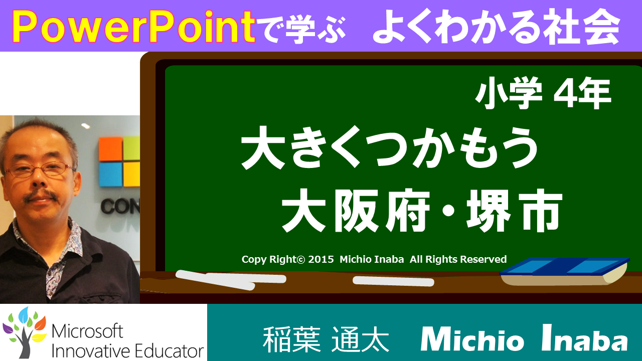 このPowerPointスライド、宇宙から地球、日本、近畿地方、大阪府、堺市、学校…と近づいていくものですが、けっこう楽しく学んでくれます。前任校でも作ったんですが、使用した画像がバラバラでちぐはぐな感じでした。