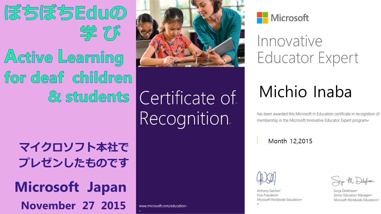 やっぱりわたしのPowerPointはテキストよりも動画や画像をビジュアルに活用するものなんですが、ぼちぼちEduの児童・生徒たち、スタッフたちのすばらしい取り組みがマイクロソフト関係者、全国の先生方に少しでも伝わってたらうれしく思います。そのPowerPoint、動画にしてYouTubeにアップしましたのでご覧ください。