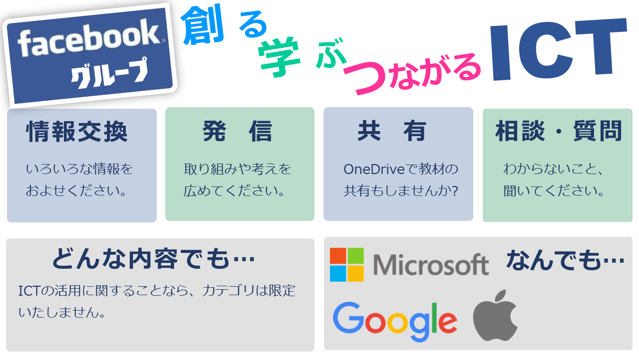 グループの名前は「創る 学ぶ つながる ICT」としました。ぜひともご参加ください。