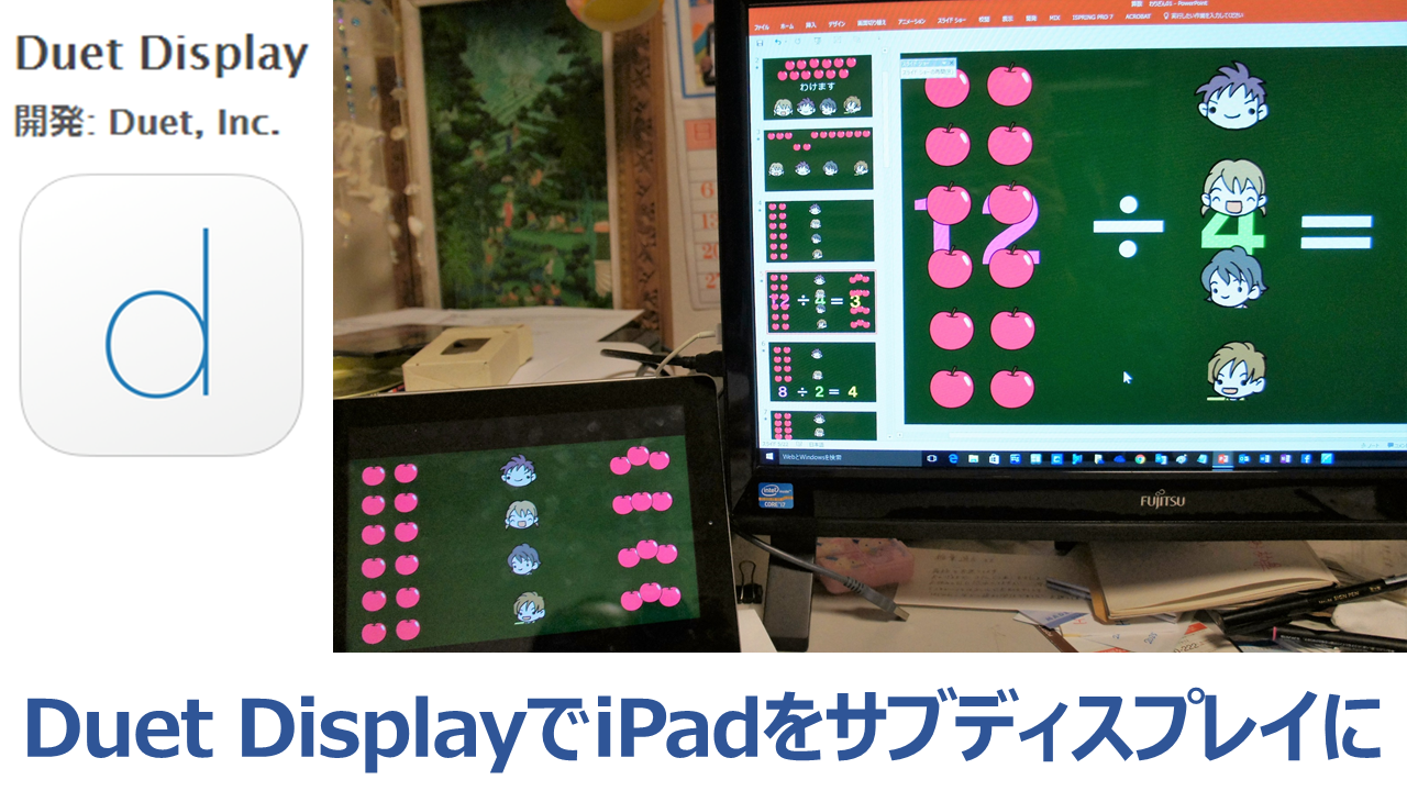 DuetDisplayというアプリをダウンロードして使っているんですが、これが1900円なり。高いなあと思ったんですが、サブのディスプレイを買うよりははるかに安上がりなんでAppストアで購入してみました。もともとはMac用だったんですが、昨年からWindowsにも対応。Windowsの方にはサイトからタダで起動ソフトがダウンロードできます。