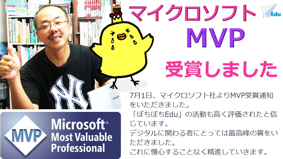 3月に「教師のためのパワポ活用術」を出版した後、何人かの方から「マイクロソフトMVPに応募しては?」と言われたんですが、MVPの方々のスキルや実績を見るととても及ぶべくもないと思ったのですが、待つ楽しみも悪くはないなという気持ちで一年間の活動をまとめて応募しました。